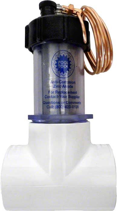 The Anti-Electrolysis 2 Inch Slip x Slip Zinc Anode is for new installations. After installation attach the copper wiire to the pool equipment copper bonding wire. This will protect all metal parts against the effects of galvanic corrosion. The see through housing allows the anode to be easily replaced when depleted. No re-plumbing required. A must for salt water pools.Zinc anodes will sacrifice themselves and corrode before all other metals in the pool. The Zinc Anode will need to be replaced approximately every three (3) years or when it is 1/2 its original size.