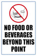 No Food or Beverages Beyond Sign - 12 x 18 Inches on Styrene Plastic