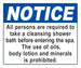 Notice All Persons Required to Shower Sign - 12 x 10 Inches on Styrene Plastic