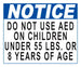 Notice Do Not Use AED on Children Sign - 12 x 10 Inches on Styrene Plastic