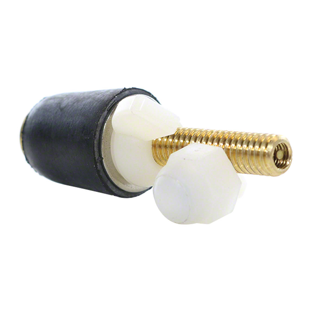 This number 2 pool plug with valve creates a tight seal for a 3/4 inch tube. Includes a blow through valve for inserting compressed air into lines.Open stem plugs (or plugs with blow thru valves) use the same rubber, large wing-nuts and corrosion free materials as closed plugs except they have an opening that passes through the center of the stem. They are similar to bike tire valves. This opening allows introduction of air or water pressure into the system you are testing. This is commonly used for clearing blocked lines, blowing out lines for winterization, or pressure testing.