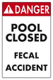Danger Pool Closed Fecal Accident Sign - 12 x 18 Inches on Heavy-Duty Aluminum