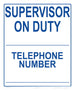 Supervisor on Duty with Telephone Number Write-on Sign - 10 x 12 Inches on Styrene Plastic