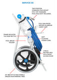 The Service-30 units mount securely to any trailer or 2 inch trailer hitch receiver for safe transport from pool-to-pool. Lightweight and easy to maneuver, service units can transport everything you need in one trip.