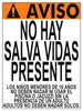 Massachusetts/New York No Lifeguard Warning Sign in Spanish (16 Years and Under) - 18 x 24 Inches on Styrene Plastic