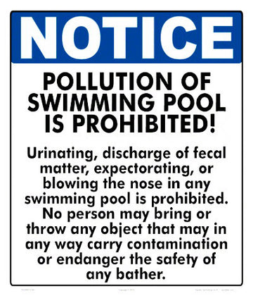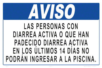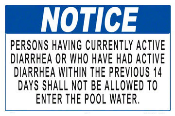 Notice Persons With Diarrhea Pool Sign - 18 x 12 Inches on Styrene Plastic