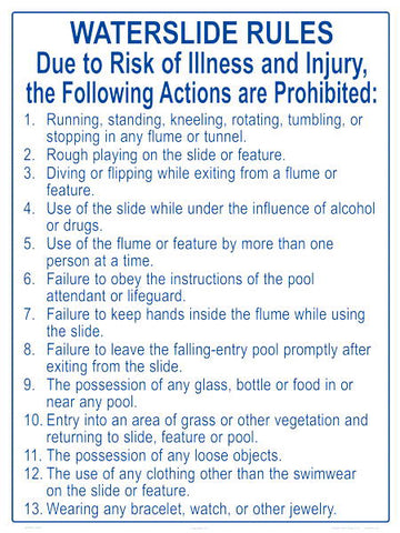 Georgia Waterslide Rules Sign - 18 x 24 Inches on Styrene Plastic