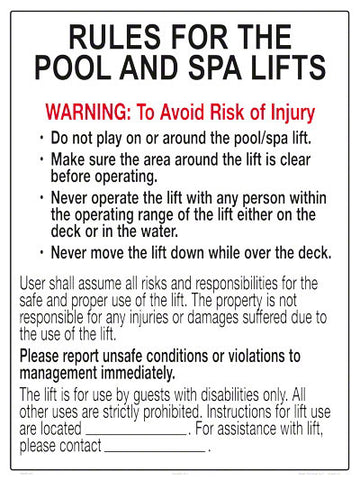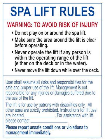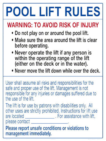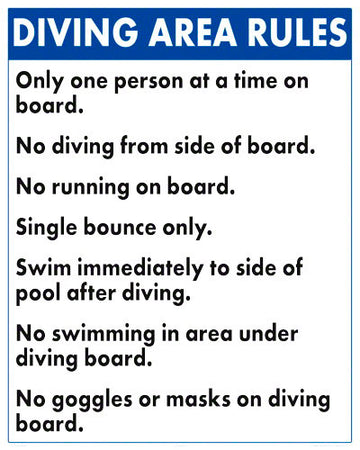 Our selection of signs will allow your guests to stay informed on slide rules, diving area rules, sauna rules, your facility’s pollution rules, and much more!