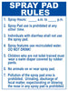The New York Spray Pad Rules sign is a requirement of New York for aquatic facilities that have spray pads. It is designed according to New York Title 10 Part 6 for Spray Pads. Any state with a spray pad and no set rules can use this sign.