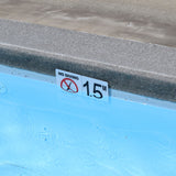 This plastic depth marker tile states 1.5 M. It has an overall size of 6 x 6 inches which will fit over standard ceramic pool depth marker tiles.Our tempered Plastic Overlays are made for the waterline depth in your pool. They have beveled edges, a smooth surface, and a thin profile. They can be installed over most surfaces including tile, fiberglass, paint, vinyl liner, etc. Overlays are used to go over existing tile depth marking that has faded or to mark depths inside pools where ceramic tile will not work. They are designed to save you time and money! You will need to lower the water level at least 3 inches below where you will be placing the overlay. Allow the overlay to bond for 24 hours before filling the pool.