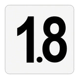 This plastic depth marker tile states 1.8. It has an overall size of 6 x 6 inches which will fit over standard ceramic pool depth marker tiles.