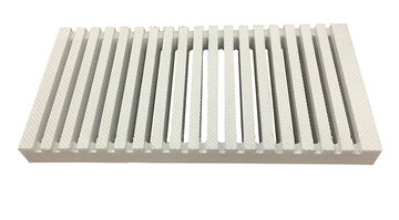 Gutter grates capture water that is filtered and returned to the pool through floor inlets. They are slip-resistant with a raised surface for a safe finish. And they are very appealing to the eye and provide an attractive finish to overflow swimming pools.