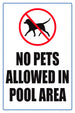 Management may have their own rules to post for their aquatic facility. Some of these policy rules may even be required by your state. This No Pets Allowed sign indicates the facility does not allow any pets.