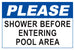 Please Shower Before Entering Pool Area Sign - 18 x 12 Inches on Styrene Plastic