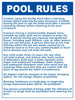 Pool rules signs are important for all types of pools. Posting a pool rules sign reinforces important safety guidelines for showering, running, glassware, diving, etc., for all pool visitors.