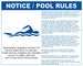 Pool rules signs help ensure the safety of those using and enjoying the pool by establishing clear expectations and guidelines that must be followed. This is critical to prevent accidents, both minor and major. Pool rules signs list the most important rules for swimmers as defined by state, local or federal guidelines. These rules specify proper use of the pool including hygiene, hours of operation, diving rules among others. Most states require posting of pool rules signs at all commercial pools. These signs are essential to limiting liability for pool owners and lifeguards.
