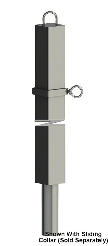 These pool deck stanchions posts are made of stainless steel and anchored to the ground below them. They come in two lengths, 8.5 feet for backstroke flags or 4.5 feet for false start recall ropes when they're needed on a race day at your local swimming event!
