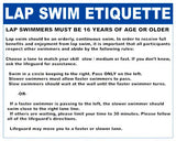 Lap Swim Etiquette Sign - 30 x 24 Inches on Styrene Plastic