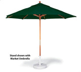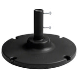 This 35 pound Black Umbrella Base features a long, reinforced stem with two thumb screws and is specifically designed to hold a table umbrella securely to the ground. The base also features molded anchor bolt holes so you can secure the base to your deck for extra stability. The umbrella base will securely hold any 1-1/2 inch diameter umbrella pole.Made of resin, the umbrella base is UV resistant and will not rust or mark your deck. The resin base is filled with cement for a weight of 35 pounds. You can add an optional 35 pound ring for increased stability (sold separately).
