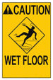 Safety Notification signs are used at aquatic facilities to notify patrons of extra precautions that should be taken or other information related to safety concerns. This Wet Floor Caution sign indicates the floor is wet and to use caution to prevent injuries.
