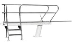 This S.R. Smith 1 Meter Deluxe Diving Tower includes a right ladder mount, handrails, quick adjustable fulcrum, anchor jigs, and jig to base hardware. This tower will accommodate either a 14 or 16 foot diving board. The Deluxe Towers are made of carbon steel, primed only and ready for a high-quality acrylic urethane enamel paint top coat. Handrails are made of 1.90 inch O.D. .065 inch wall stainless steel.