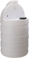 The tank is polyethylene and certified to NSF/ANSI 61. Lid has child resistant lock.