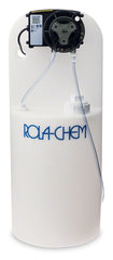 This is a 15 Gallon White Chemical Tank System with 45MP2 Model Fixed Flow Pump. This system is 25 PSI, 10 GPD, 120 Volt and includes 3/8 Inch Standard Tubing. Tank systems are shipped pre-assembled for quick installation with the Classic 45 Series Fixed Pump, mounted vertically with a rain roof.The Classic 45 Series Fixed Pumps are single head self-priming pumps that have fixed outputs. The gear driven motor is 26 RPM. The Peristaltic pump advantage includes: automatic degassing, self-priming against pressure, and can prime up to 25 feet. An accessory kit is shipped with each pump and includes additional pump tube, suction tubing, weighted strainer, and mounting bracket.