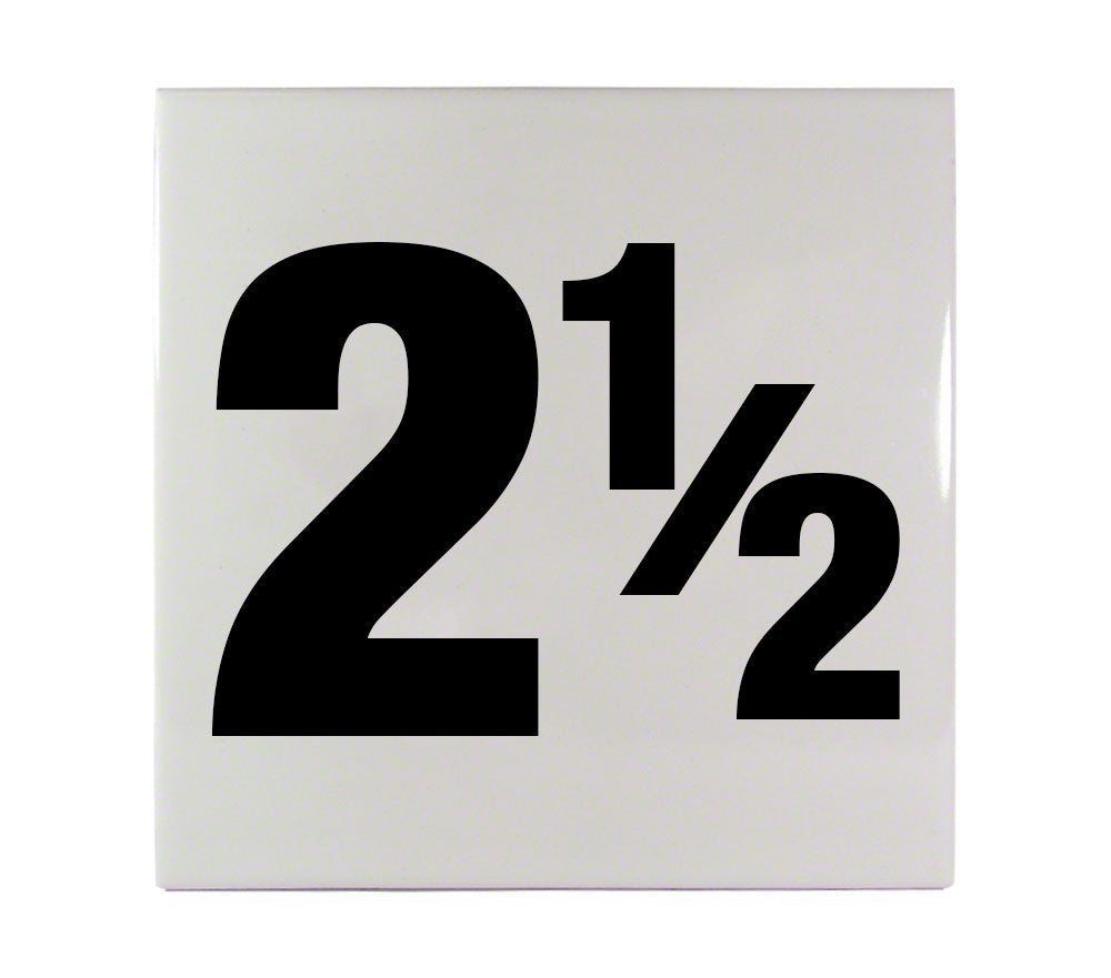 This ceramic pool depth marker is printed with 2.5 and has a smooth surface. It's overall size is 6 Inch x 6 Inch and has a letter height of 4 InchesThis ceramic pool tile is printed with ceramic glaze inks, then kiln fired to ensure the finest, most durable depth and safety marker line available.