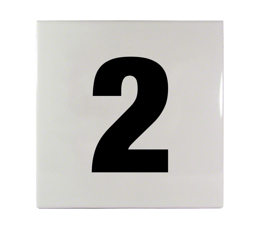 This ceramic pool depth marker is printed with 2 and has a smooth surface. It's overall size is 6 Inch x 6 Inch and has a letter height of 4 InchesThis ceramic pool tile is printed with ceramic glaze inks, then kiln fired to ensure the finest, most durable depth and safety marker line available.