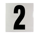 This ceramic pool depth marker is printed with 2 and has a smooth surface. It's overall size is 6 Inch x 6 Inch and has a letter height of 5 InchesThis ceramic pool tile is printed with ceramic glaze inks, then kiln fired to ensure the finest, most durable depth and safety marker line available. The smooth surface tiles are for waterline applications.