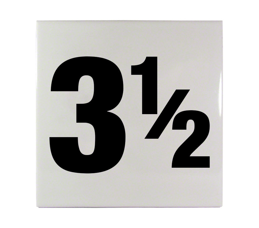 This ceramic pool depth marker is printed with 3.5 and has a smooth surface. It's overall size is 6 Inch x 6 Inch and has a letter height of 4 InchesThis ceramic pool tile is printed with ceramic glaze inks, then kiln fired to ensure the finest, most durable depth and safety marker line available.