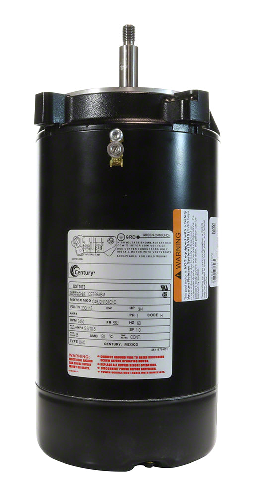 This is a Regal Beloit Century UST1072 Up-Rated Replacement 3/4 HP Pool and Spa Pump Motor, 3450 RPM, 115/230 Volts, 56J, Threaded Shaft. This motor is designed to fit various pool pumps including: Astral Sprint 2000, Jacuzzi L Series, Max-Flo SP1800X/SP2800X, Super Pump SP2600X, Jacuzzi PH, UPH, PC, EP, RC pumps, and Speck E90, S90 and ES90.Century motors by Regal have been carefully engineered to meet the rugged demands of the pool and spa industry. They are the innovative leader in pool pump motors. Two sealed ball bearings (with large 304 bearing on shaft end) offer ample capacity for extended life. Bearings are selected for quietness and are lubricated for life with greases specifically chosen for moisture and heat resistant qualities. Aluminum end frames are accurately machined for maximum concentricity and minimum runout.