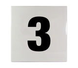 This ceramic pool depth marker is printed with 3 and has a smooth surface. It's overall size is 6 Inch x 6 Inch and has a letter height of 4 InchesThis ceramic pool tile is printed with ceramic glaze inks, then kiln fired to ensure the finest, most durable depth and safety marker line available.
