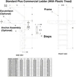 This commercial grade pool ladder has 3 plastic steps for swimmers to get in and out of your pool. The distance between the front (pool) rail and back (anchor) rail is 35 inches and the overall outside diameter of the rail tubing is 1.90 inches.S.R. Smith Standard Plus ladders are made from thick stainless steel tubing and are suitable for heavy duty use in commercial aquatic facilities.