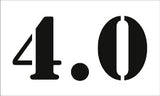This is a hard plastic stencil that allows you to paint the characters of 4.0 on your pool deck to mark the depth of the water. The stencil has an overall size of 10 Inch x 6 Inch.Our line of hard plastic stencils are the industries highest quality stencils. Made of high impact styrene, they are designed to be reused for years. For use on the walls, coping, and decks of your swimming pool and spas.