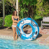 The PoolMaster Hurricane Sport Water Tube is a generous 50 inches wide and has two permanently-bonded handles. The two permanently-bonded handles are for grabbing, maneuvering and overall support, as needed. The water tube has an on-trend surf/skate design applied to a large profile. It is designed for rugged water action and constructed of 14 gauge vinyl.The Hurricane is suitable for children (8 years and above) and adults alike. The tube comes in either blue or green (assorted colors).