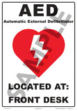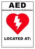 AED Located at Sign - 10 x 14 Inches on Heavy-Duty Aluminum (Customize or Leave Blank)