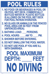 This swimming pool and facility pool sign is designed for harsh swimming pool and outdoor environments. It is predrilled in each corner for easy hanging or mounting. This sign is printed using our high-quality weather and sun resistant inks.