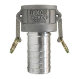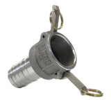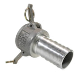 This is a 2 inch Aluminum Female Coupler and Hose Shank (Polished Hose Barb), Type C coupler. Cam and groove couplings or quick connect couplings are used as a hose connection to avoid leakages. Type C couplers are normally used with Type E adapters but can also be used with Type A and F adapters and DP (Dust Plug) of identical size.