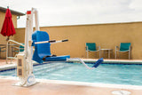 The AquaTram LT-2 pool lift with anchor by Pentair Paragon has a lifting capacity of 350 pounds. The ADA compliant AquaTram LT-2 is very affordable and is the perfect choice for pools with limited deck space. The LT-2 is non-rotating and has an ultra-compact design with low height. It has a low profile and small footprint using minimal deck space. Plus, it will fit through most doorways.The AquaTram LT-2 lifts are constructed of stainless steel and epoxy powder-coated for corrosion resistance. They have dual flip-up armrests for easy transfer and an adjustable, removable footrest. The blue seat is comfortable and includes an adjustable lap belt with hook and eye fastening.
