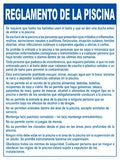 The Arizona Pool Rules Sign in Spanish for all public pools has been designed in accordance with the Maricopa Chapter VI Health Code Per Arizona Title 9 and 18 and is printed on heavy-duty aluminum material. This sign is guaranteed to meet the state code of Arizona.Pool rules signs are important for all types of pools. Posting a pool rules sign reinforces important safety guidelines for showering, running, glassware, diving, etc., for all pool visitors.