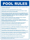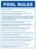 Pool rules signs help ensure the safety of those using and enjoying the pool by establishing clear expectations and guidelines that must be followed. This is critical to prevent accidents, both minor and major. Pool rules signs list the most important rules for swimmers as defined by state, local or federal guidelines. These rules specify proper use of the pool including hygiene, hours of operation, diving rules among others. Most states require posting of pool rules signs at all commercial pools. These signs are essential to limiting liability for pool owners and lifeguards.