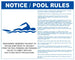 Pool rules signs help ensure the safety of those using and enjoying the pool by establishing clear expectations and guidelines that must be followed. This is critical to prevent accidents, both minor and major. Pool rules signs list the most important rules for swimmers as defined by state, local or federal guidelines. These rules specify proper use of the pool including hygiene, hours of operation, diving rules among others. Most states require posting of pool rules signs at all commercial pools. These signs are essential to limiting liability for pool owners and lifeguards.