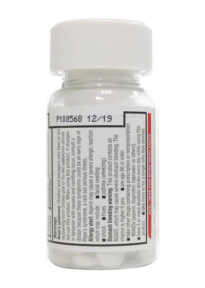 A bottle of regular strength aspirin, 325mg, with 100 tablets, is a must have for all aquatic facilities, first aid stations, nurses' stations, etc. Aspirin aids in the relief of headaches, neuralgia pains, cold discomforts and muscular aches.