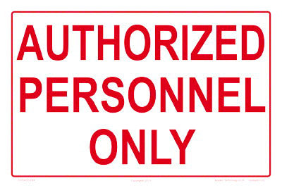 Authorized Personnel Only Sign - 12 x 8 Inch on Vinyl Stick-on