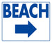Beach Arrow Right Sign - 12 x 10 Inches on Styrene Plastic