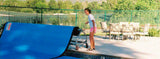The Bitterroot III is a Triple Tube Thermal Cover Reel with a storage capacity of 492 linear feet or 9,840 square feet and a total weight capacity of 1,562 lbs. The Bitterroot Deck Storage System is made of electropolished 304L stainless steel. This storage reel system is portable and designed to support the weight of wet thermal covers. The Bitterroot System is specifically designed to ensure the proper handling and storage of your thermal blanket.The Bitterroot Deck Storage System is very easy to deploy and retrieve the pool covers. It is equipped with a stainless steel crank assembly and utilizes 6 inch, non-marring polyethylene wheels. The reel is also equipped with two foot-operated brakes. The reels can accommodate blankets up to 20 feet in width.