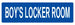 Locker Room signs are used to point out specific areas in and around the locker room and restrooms. They are mainly used to specify who can be in that area. This Boy's Locker Room sign identifies the room designated for boys to use.