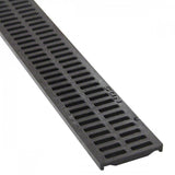 This is a 3 foot long black Channel Grate that is made of structural foam polyolefin with UV inhibitors. It is a low-cost alternative to Speed Channel. This is an excellent choice for light duty applications including residential pools, patios, spas and tennis courts.