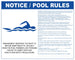 Pool rules signs help ensure the safety of those using and enjoying the pool by establishing clear expectations and guidelines that must be followed. This is critical to prevent accidents, both minor and major. Pool rules signs list the most important rules for swimmers as defined by state, local or federal guidelines. These rules specify proper use of the pool including hygiene, hours of operation, diving rules among others. Most states require posting of pool rules signs at all commercial pools. These signs are essential to limiting liability for pool owners and lifeguards.